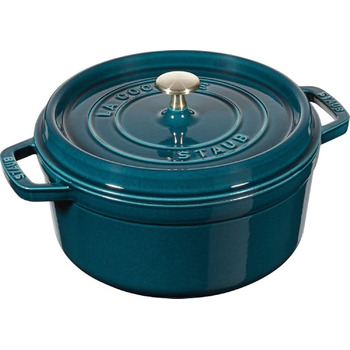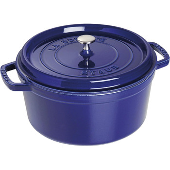 Кастрюля чугунная круглая 30 см с крышкой, темно-синяя Staub