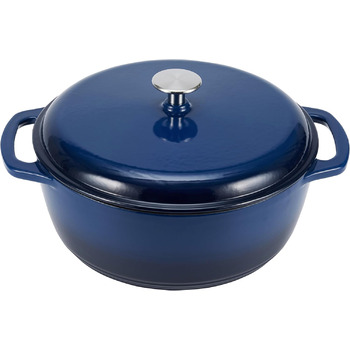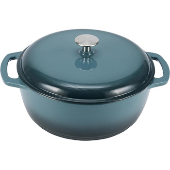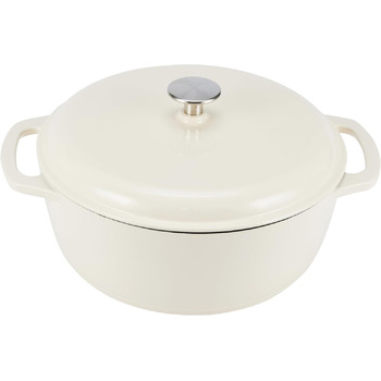 Эмалированная чугунная кастрюля обеспечивает отличное распределение и сохранение тепла. Водяной пар конденсируется на крышке и равномерно распределяется, сохраняя необходимую влажность и улучшая вкус продуктов.
